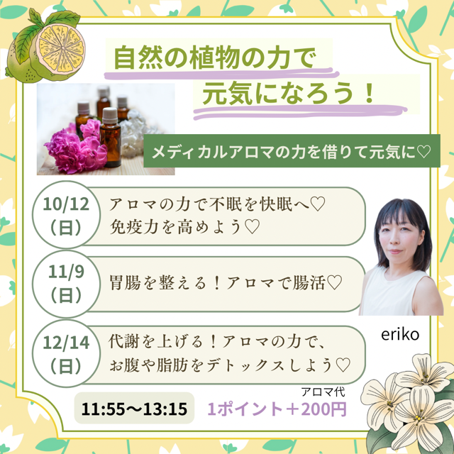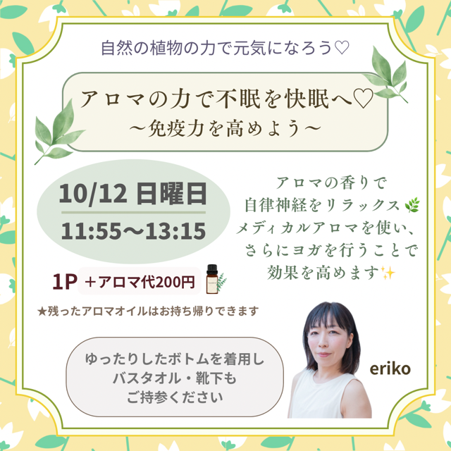 【2025.10月特別クラス】小郡店 アロマの力で不眠を快眠へ♡免疫力を高めよう♡eriko