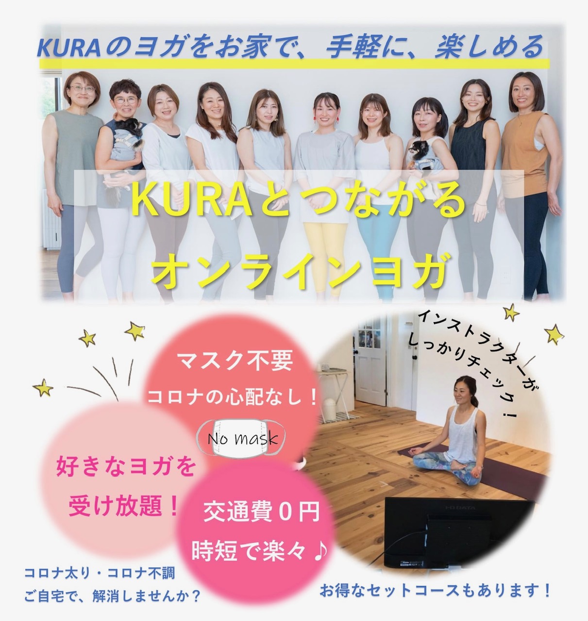 オンラインヨガを始めるときは「ちゃんと操作できるかなぁ?」と一番心配でした。というのも私は機械音痴で…。同じようなことでオンラインヨガを躊躇している方もいらっしゃるのでは?でも大丈夫!KURAの先生方がフォローとサポートしてくれます!オンラインヨガは時間さえあれば、日本全国(海外も?)どこからでもKURAのレッスンを受けることが出来るし、先生や生徒さんたちと繋がれます!スタジオの雰囲気の中でヨガをするのも大好きだけど、ちょっとした時間でヨガをしたいなぁという方は、オンラインヨガがおススメです!是非一緒に楽しみましょう!